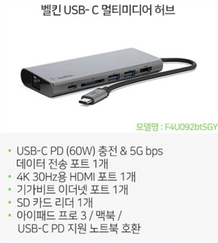 검증된 제품인 벨킨사의 허브를 소개하고자 한다.