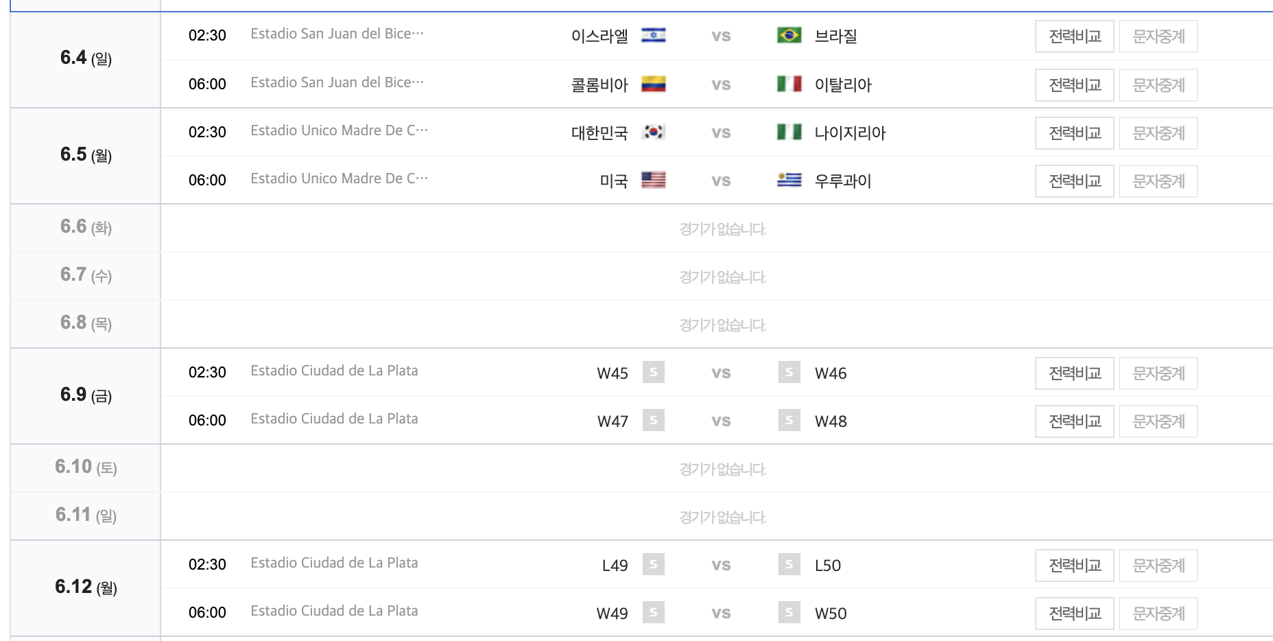 6.5일 새벽 2시 반 나이지리아와 8강전을 갖는다.