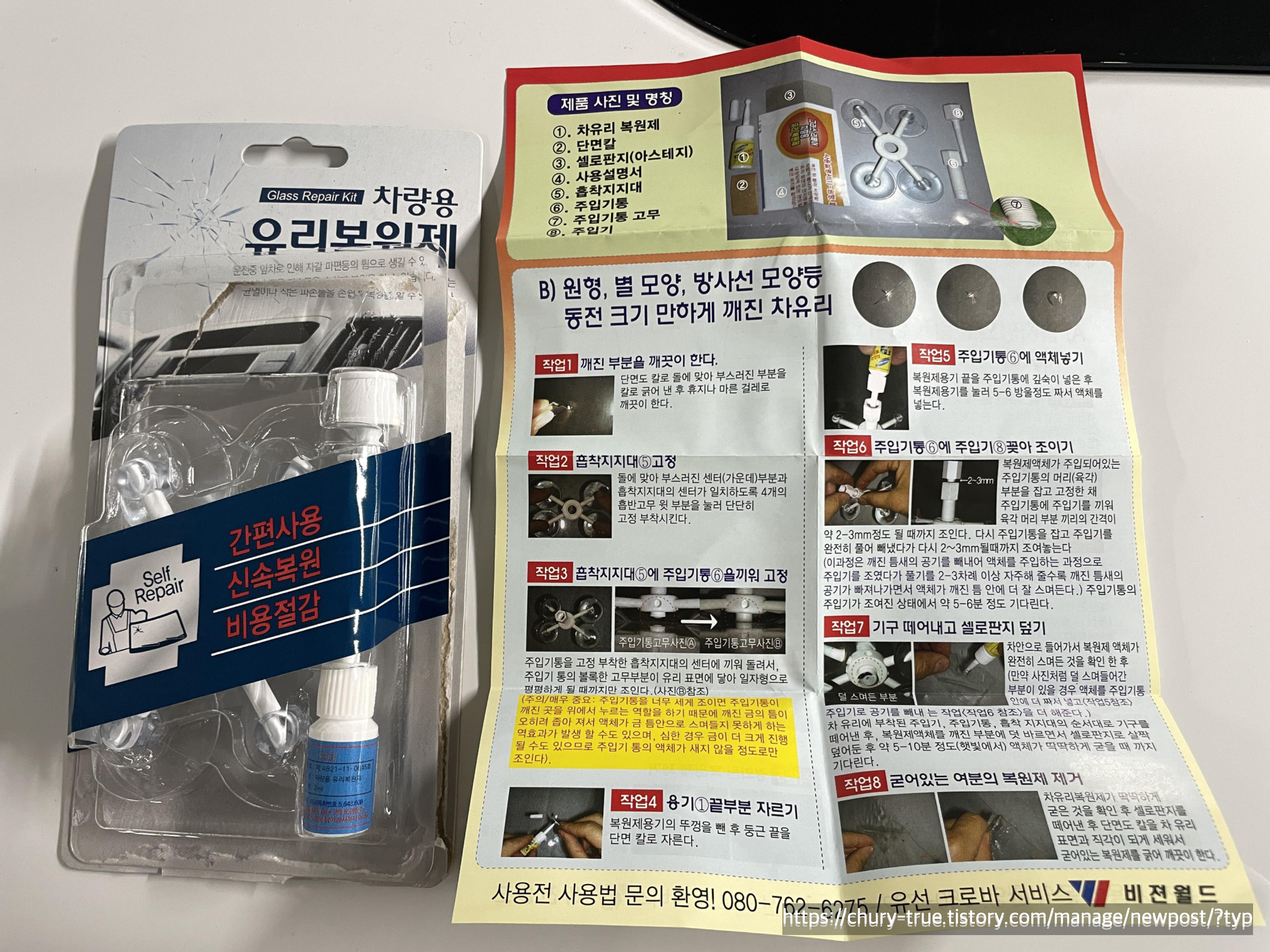 결론적으로 파손이 심한 경우는 자차보험으로 처리해야하고, 경미한 경우 셀프 복원이나 유리복원 업체에 의뢰하여 처리할 수 있다.