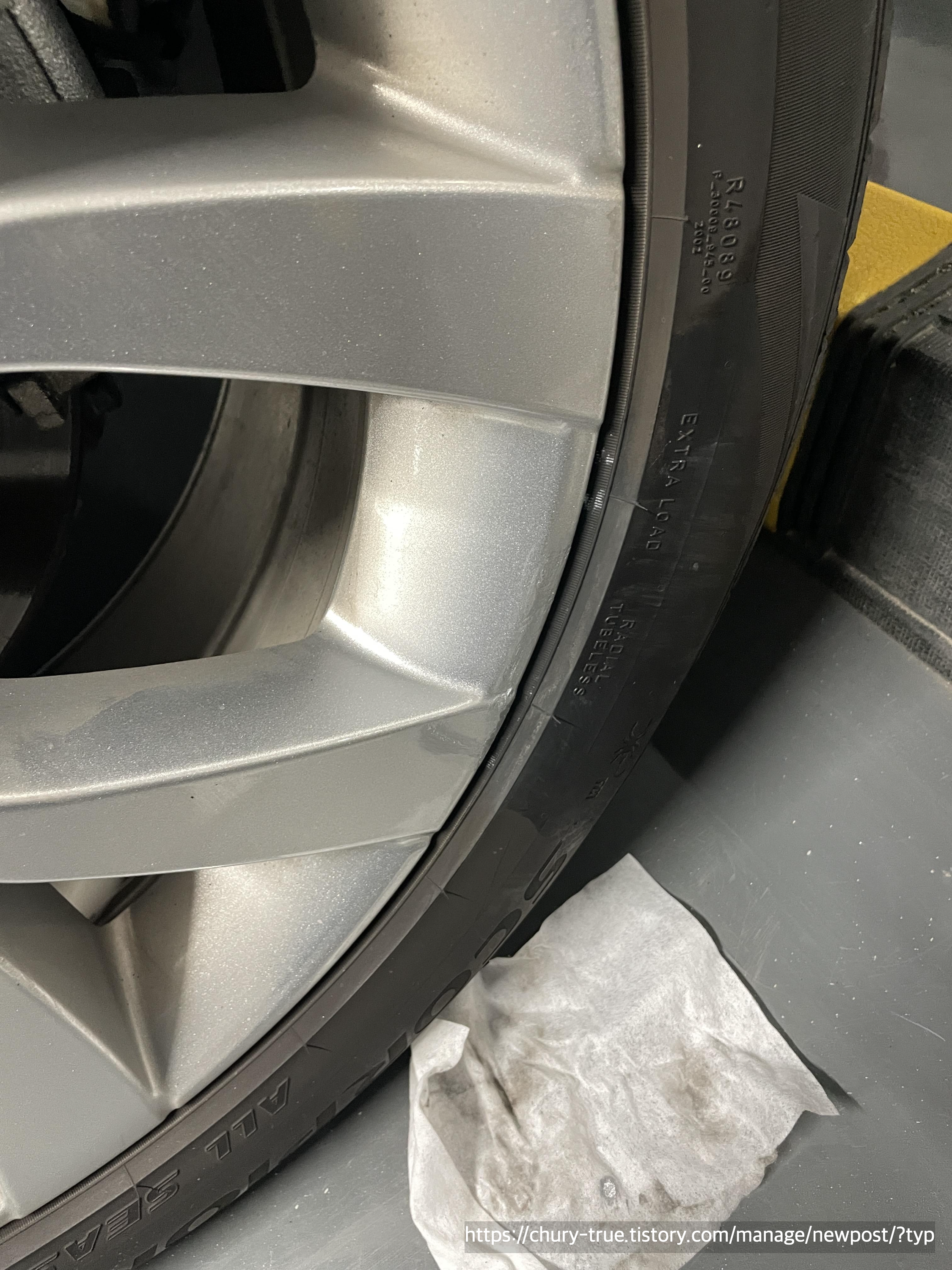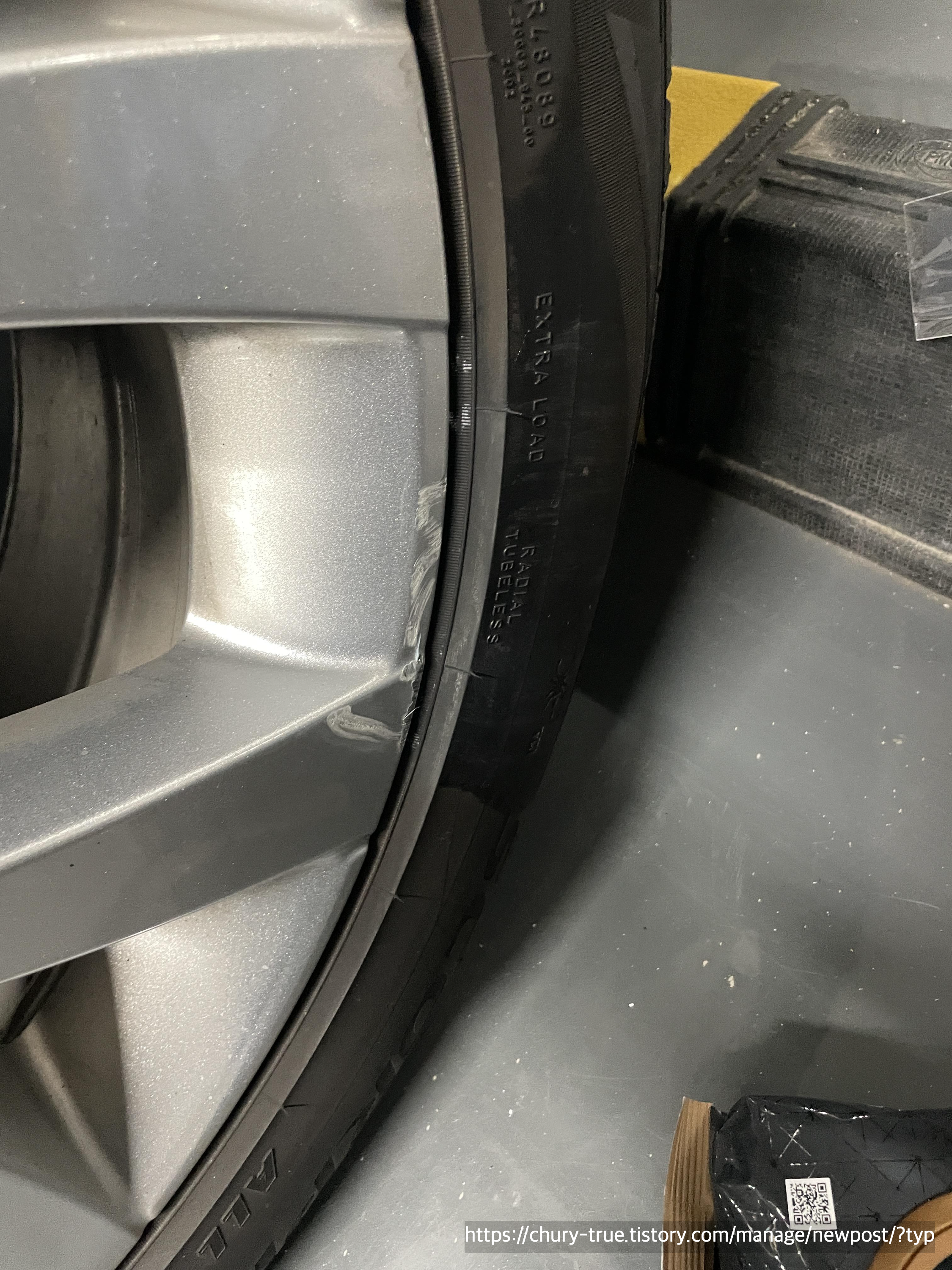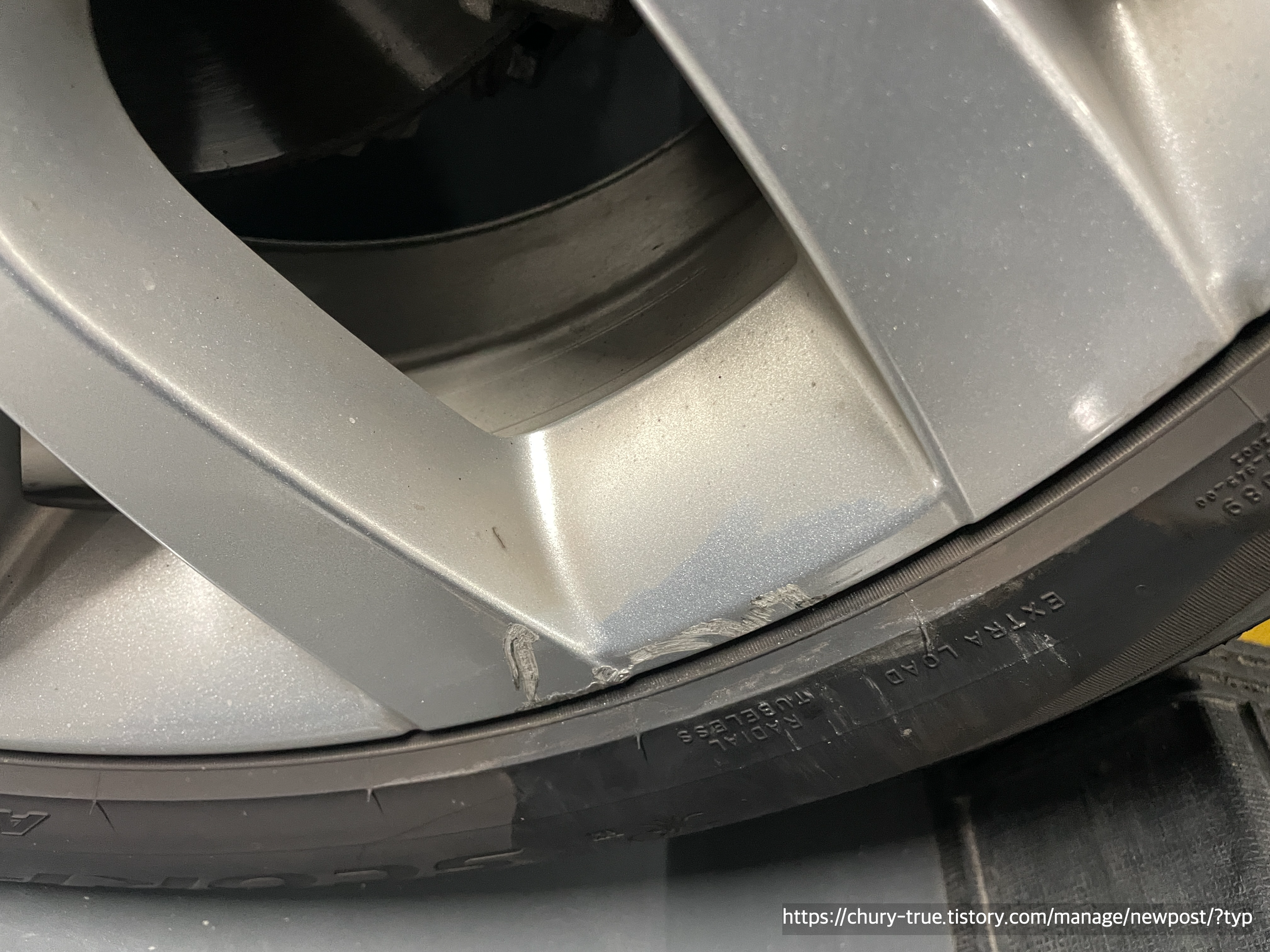 조금 높은 경계적 모서리가 있는 경우 타이어 휠에 스크레치를 발생 시킬 수 있다. 필자의 경우도 새 차인데 경계석에 타이어 휠이 부딪혀 스크래치가 조금 심하게 발생하였다.