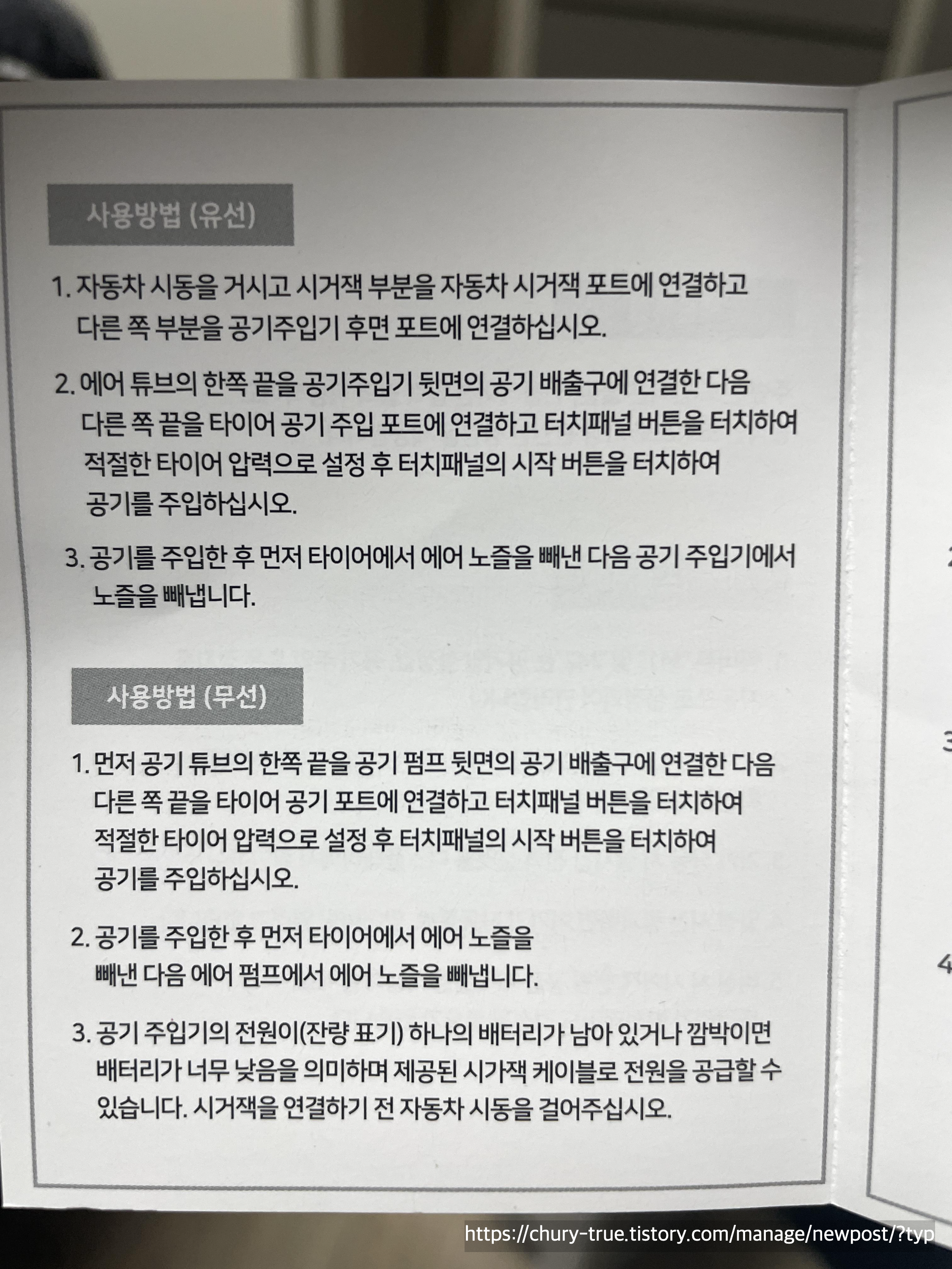 2. 타이어 공기압 주입기 사용법