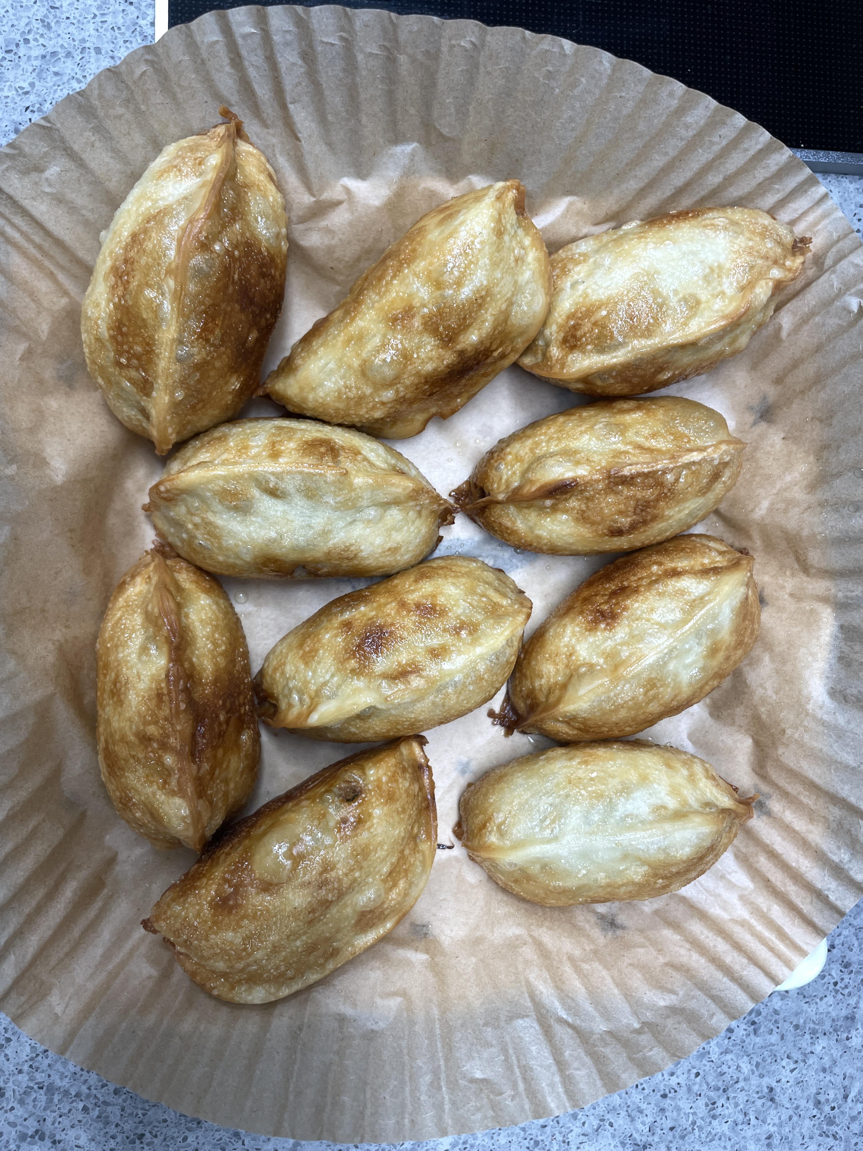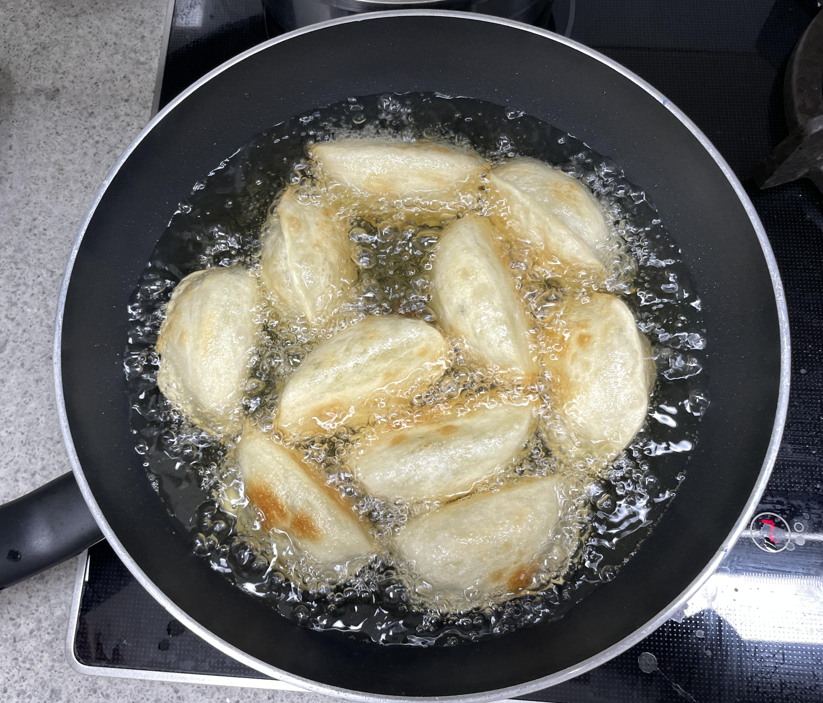 2) 만두피가 노릿노릿해질 때까지 충분히 튀긴다.