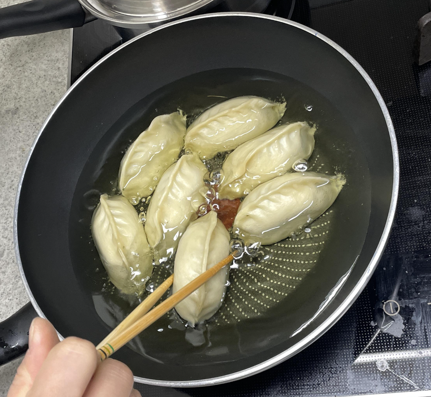 2) 만두피가 노릿노릿해질 때까지 충분히 튀긴다.