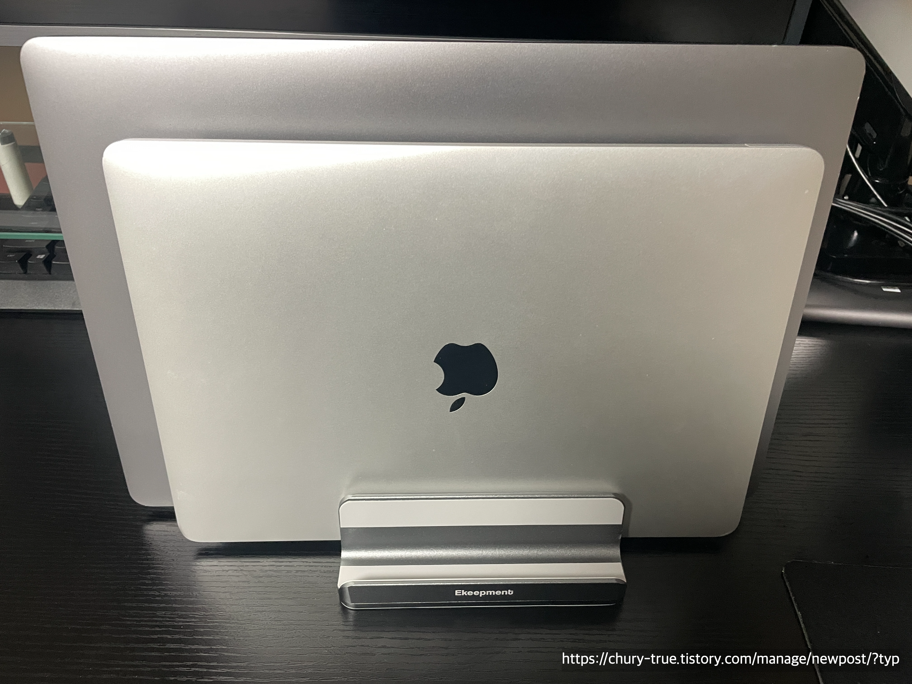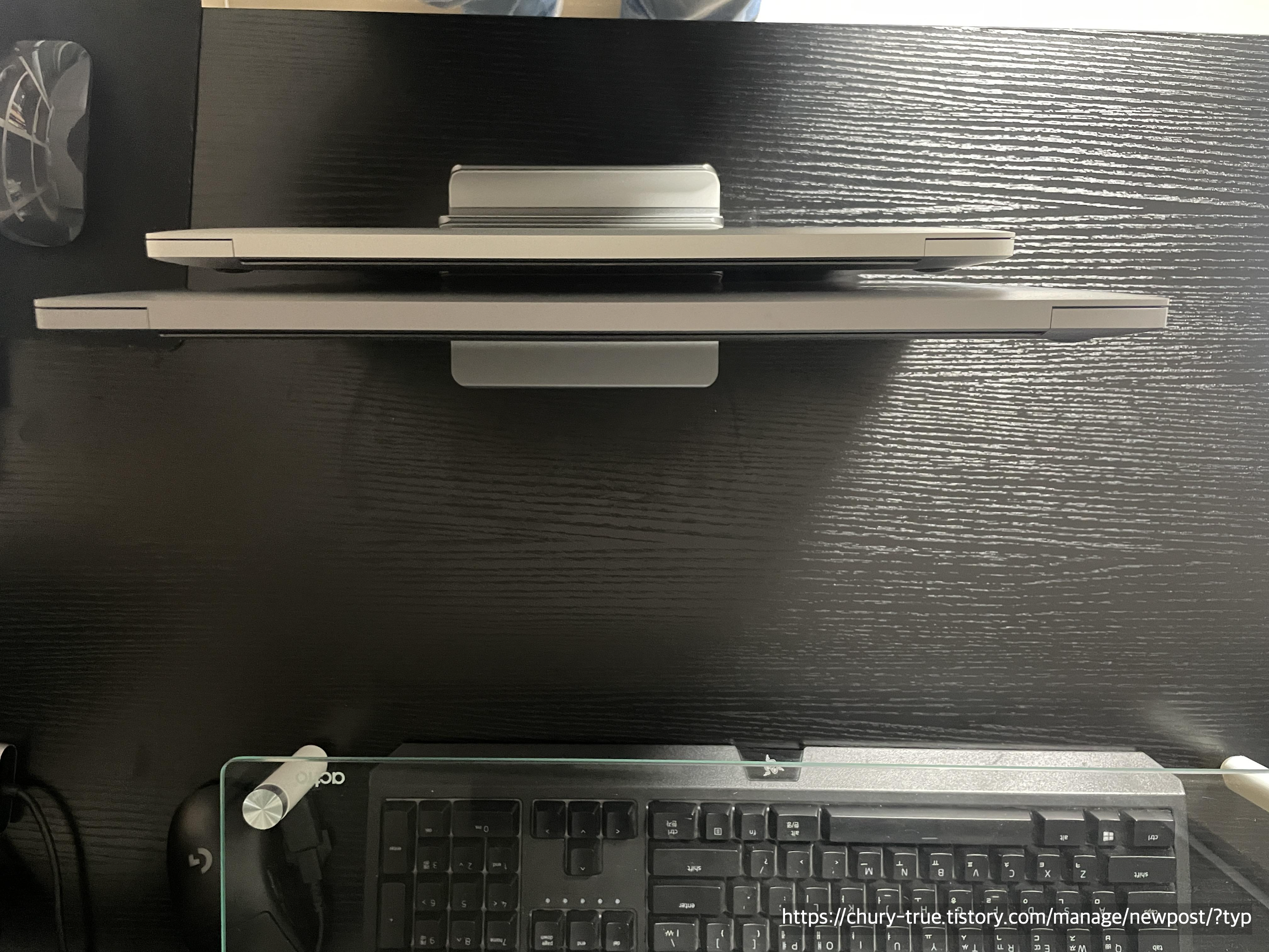 바로 책상위에 책처럼 수직으로 보관할 수 있는 아이템인 노트북 수직 거치대를 구입하였다.