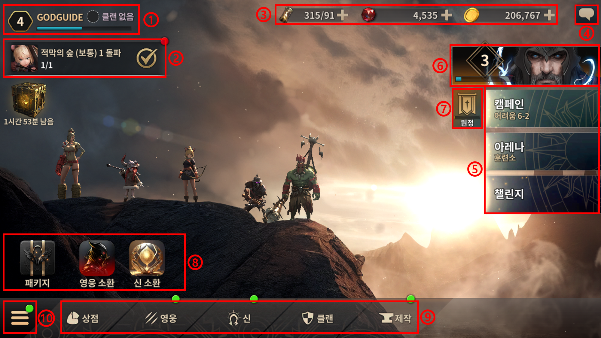 8. 패키지, 이벤트, 영웅 소환, 신 소환