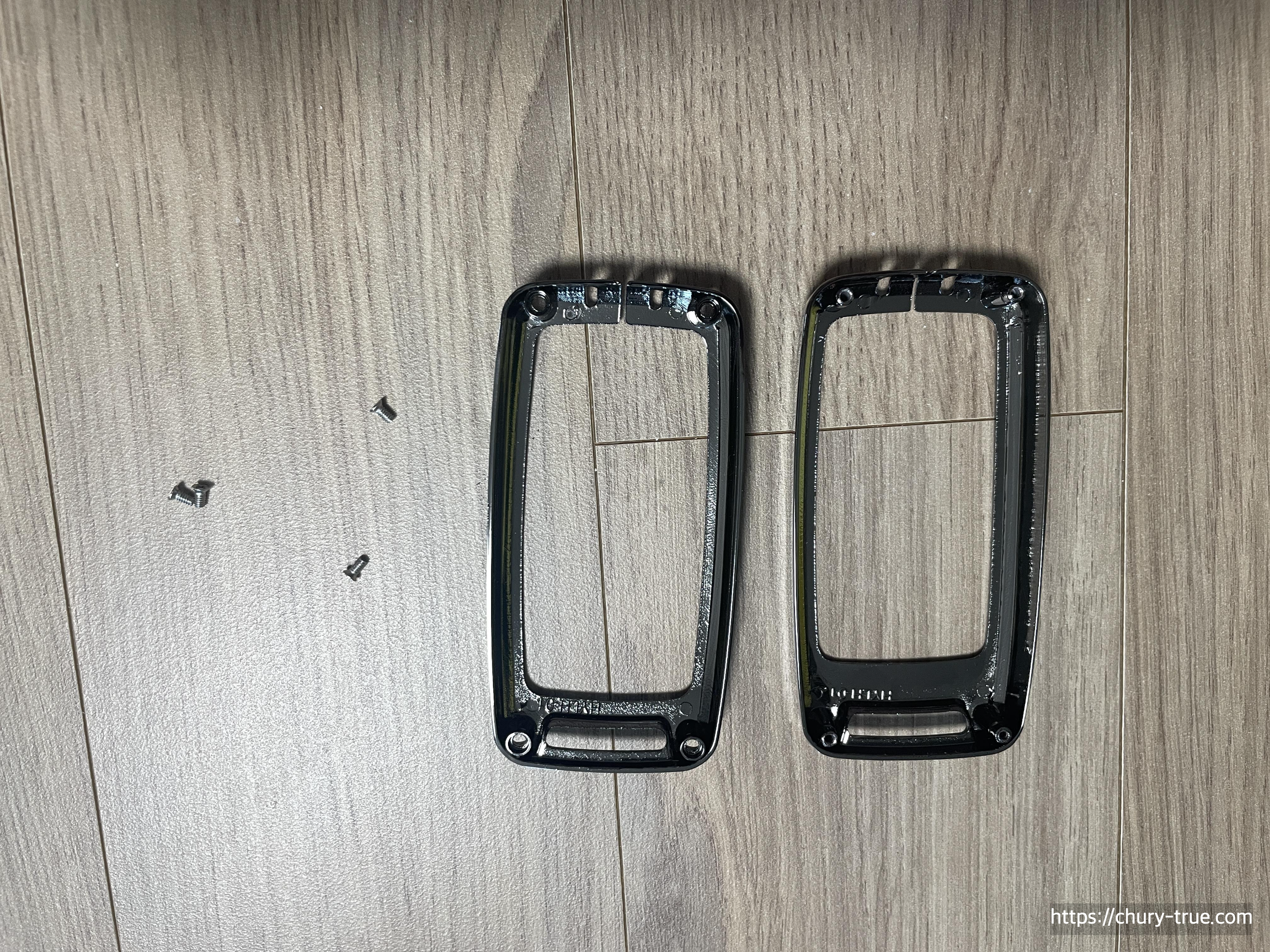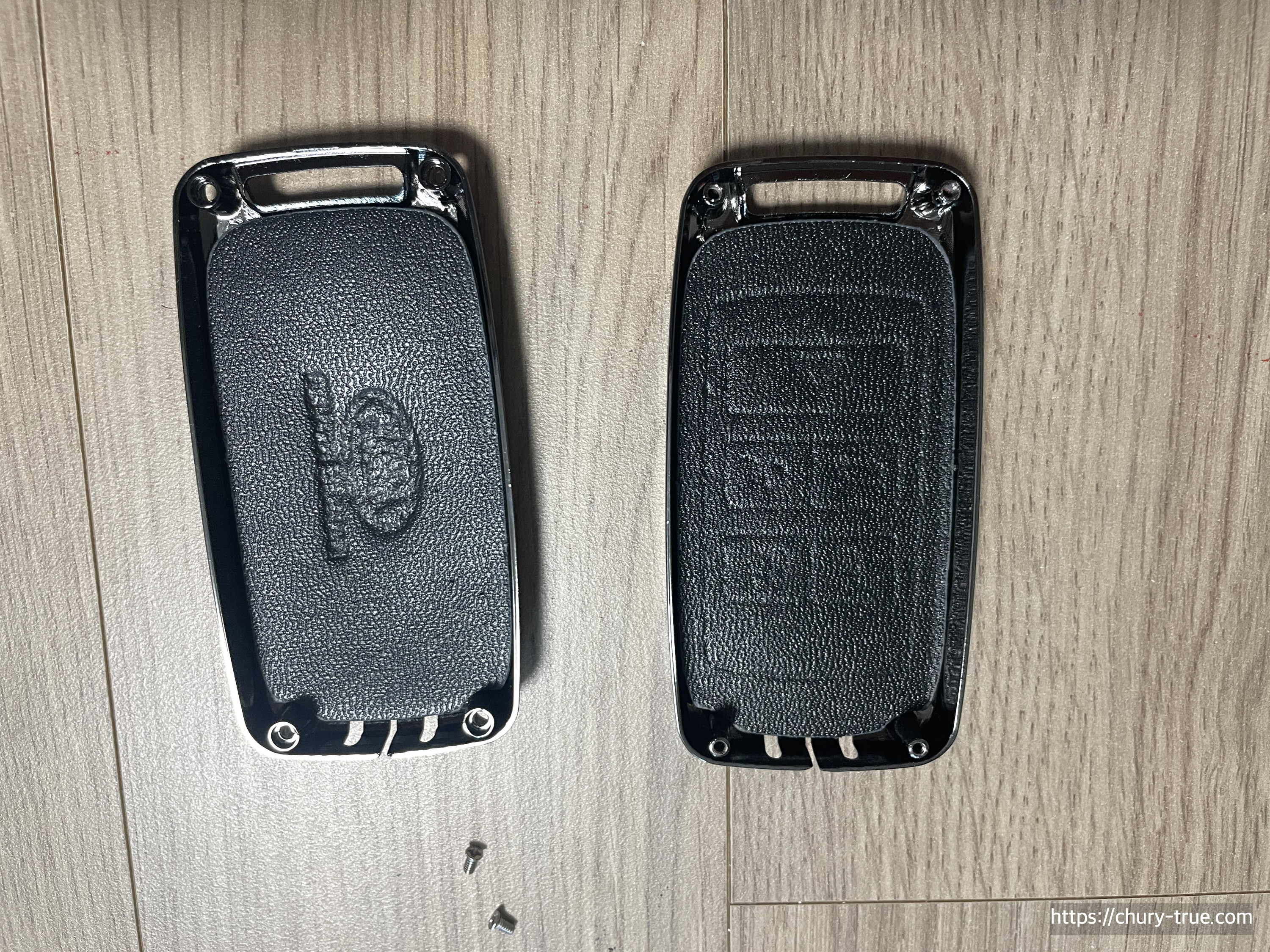 3) 키케이스 앞면 뒷면의 표면가죽을 설치한다. 홈에 맞춰 설치하면 된다.