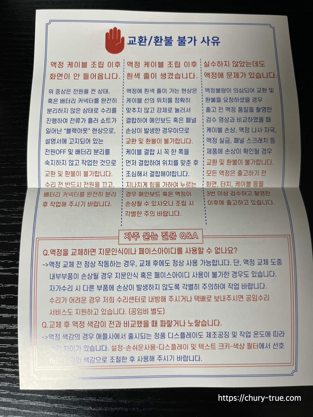 어쨌든 액정을 구매하면 주의 문구가 눈에 띈다. 복합적인 요소로 액정교체에 실패하는 경우가 많음을 주의 문구를 보며 알게 되었다.