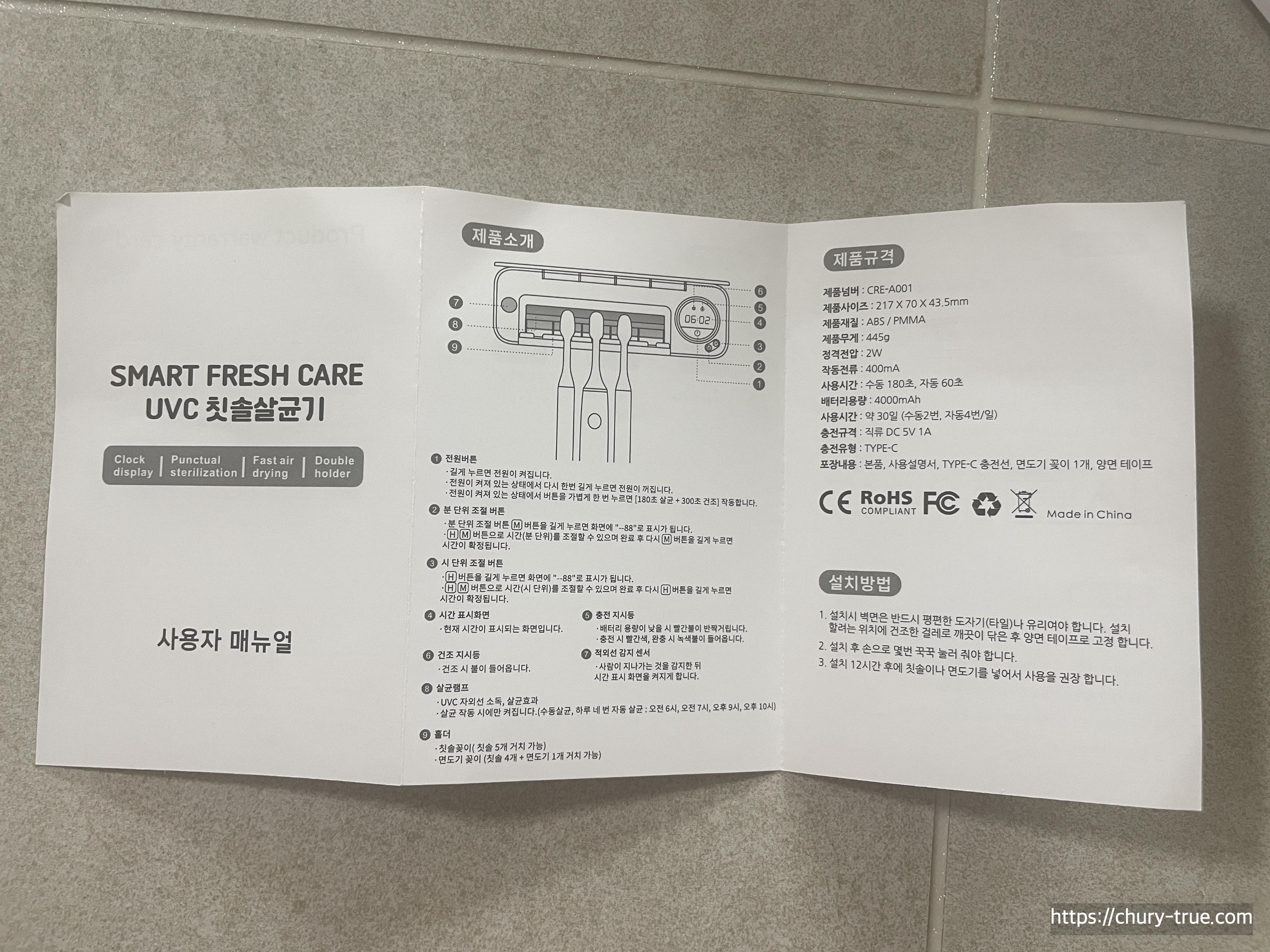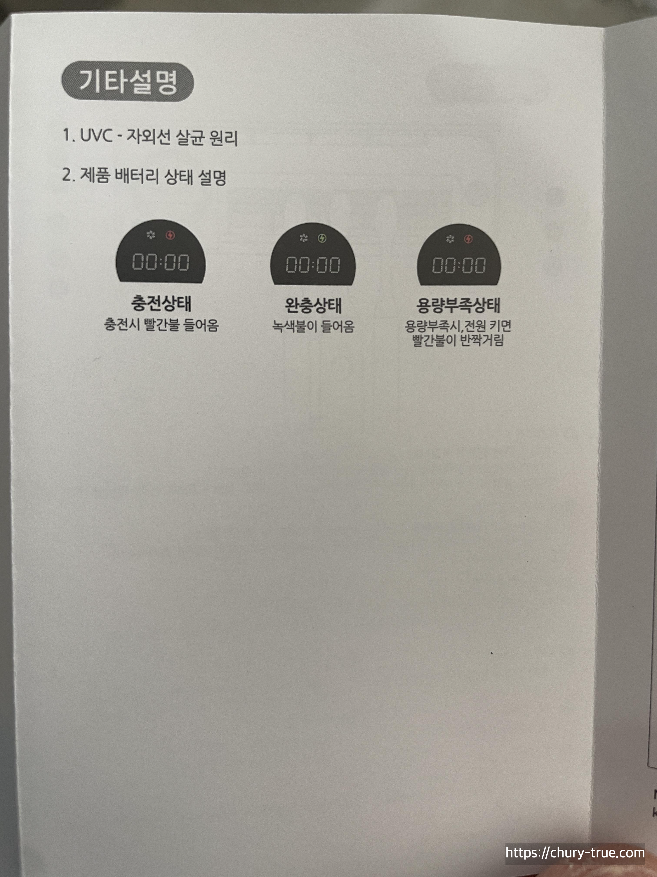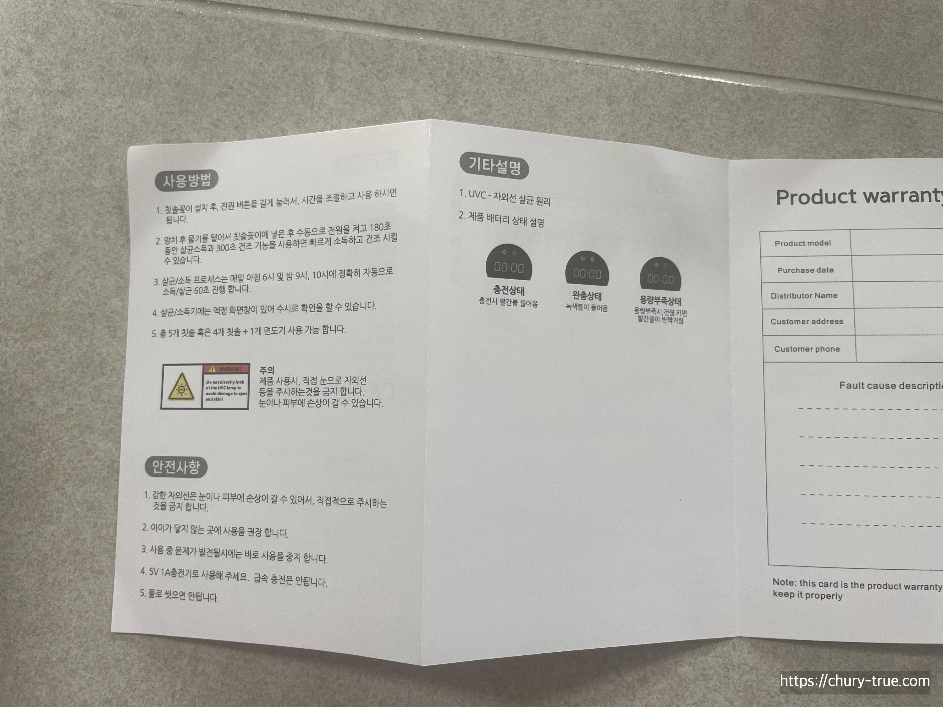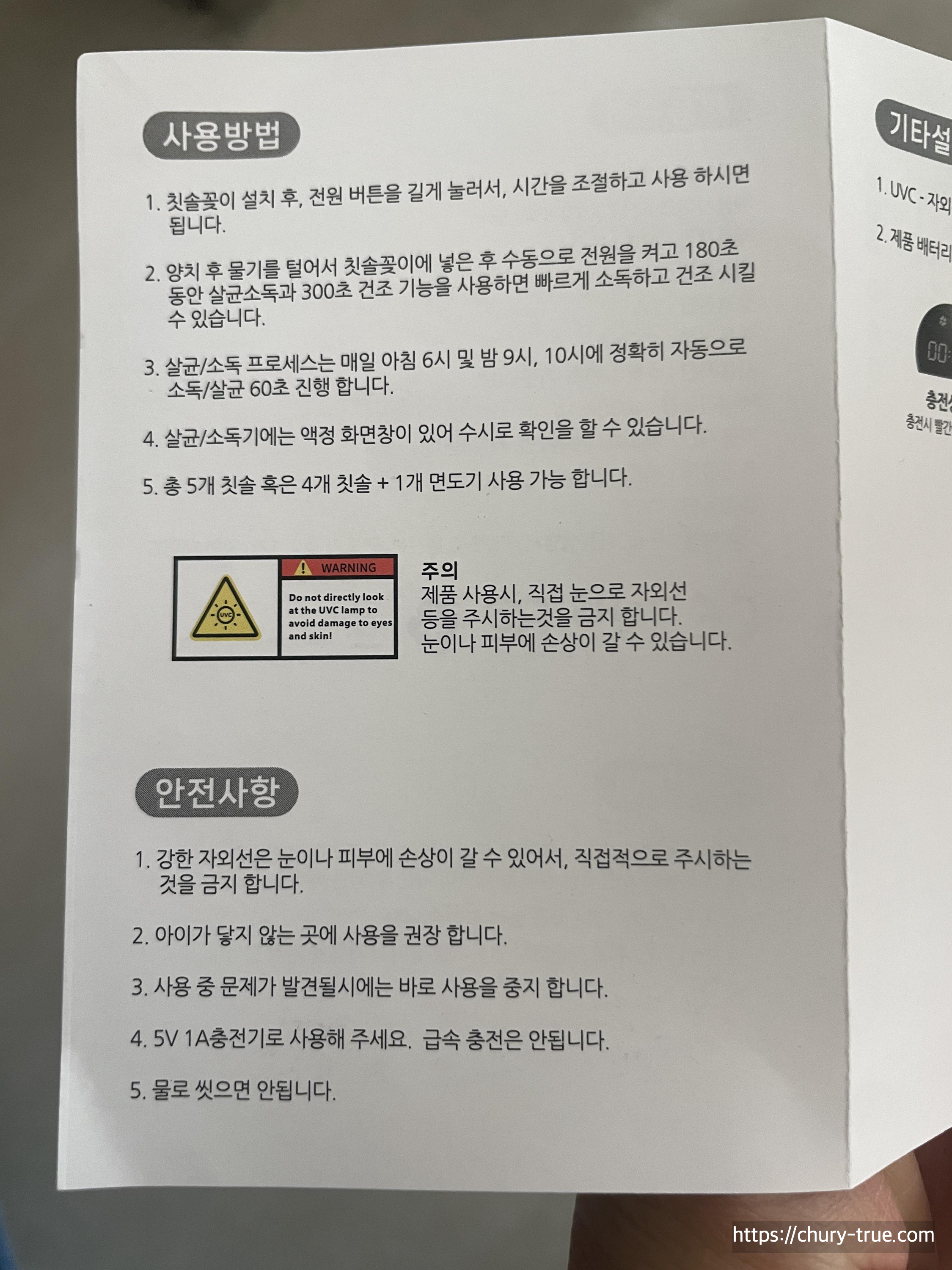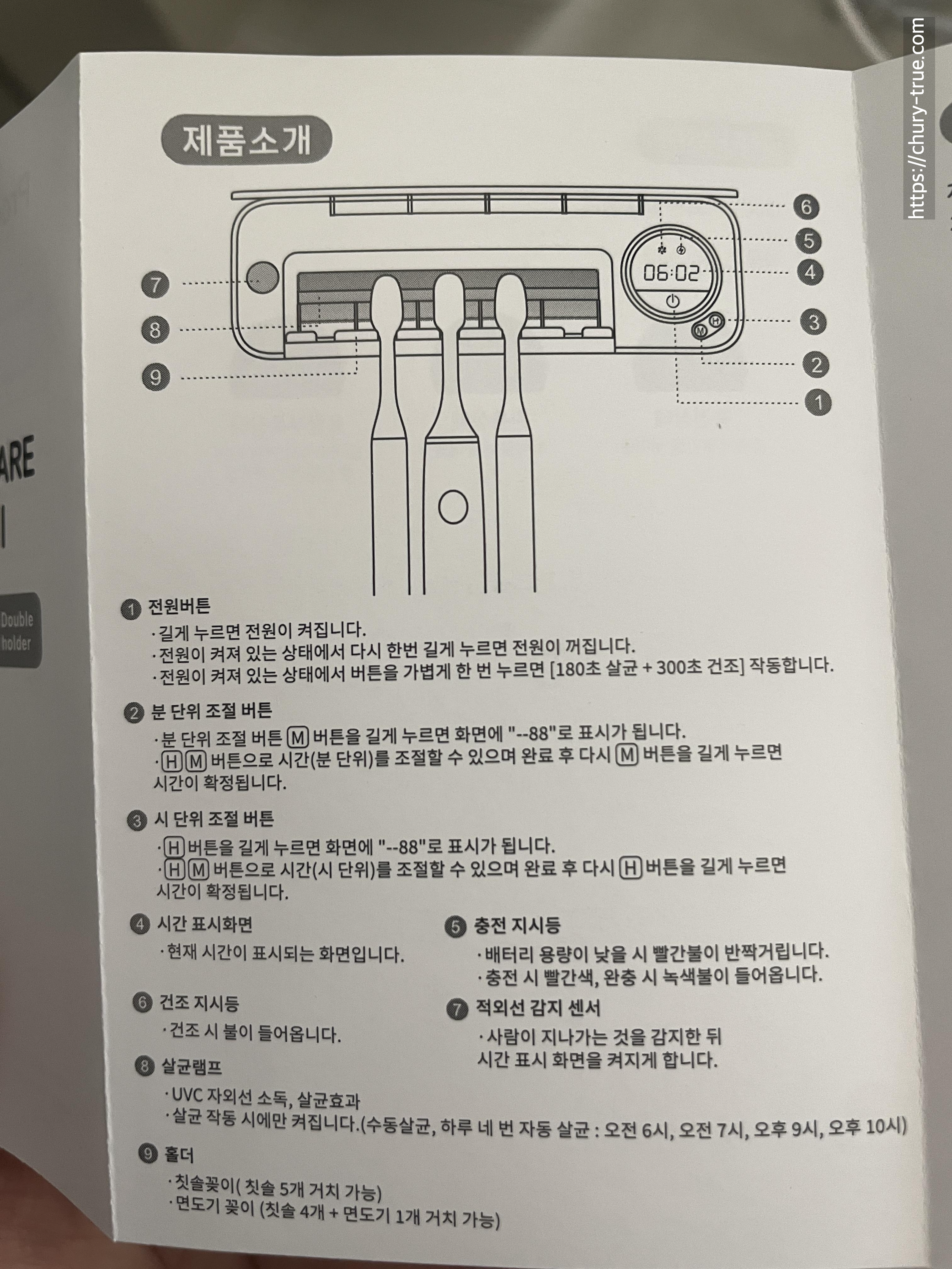 설명서에 칫솔살균기에 대해 아주 자세히 설명되어 있다.