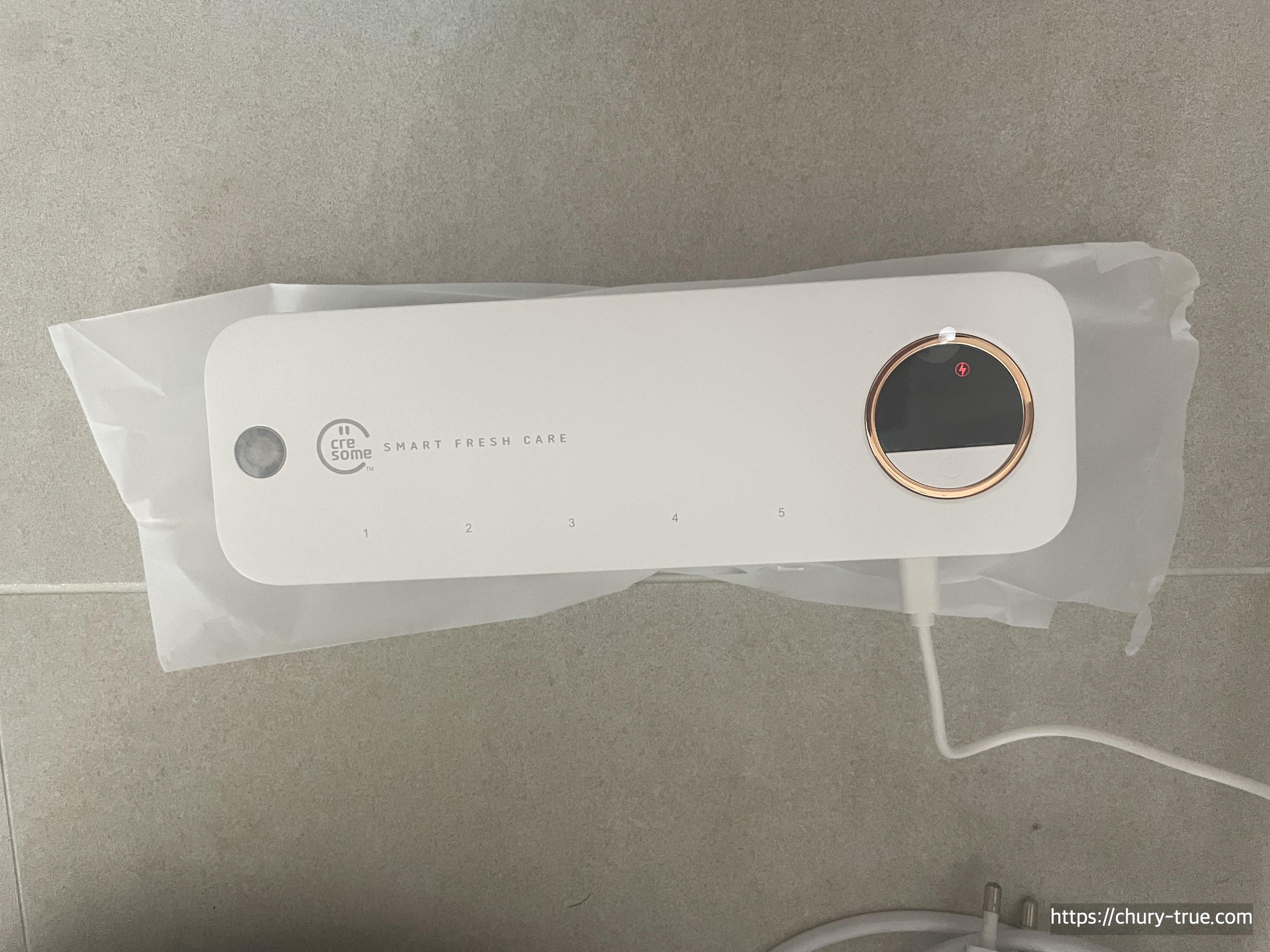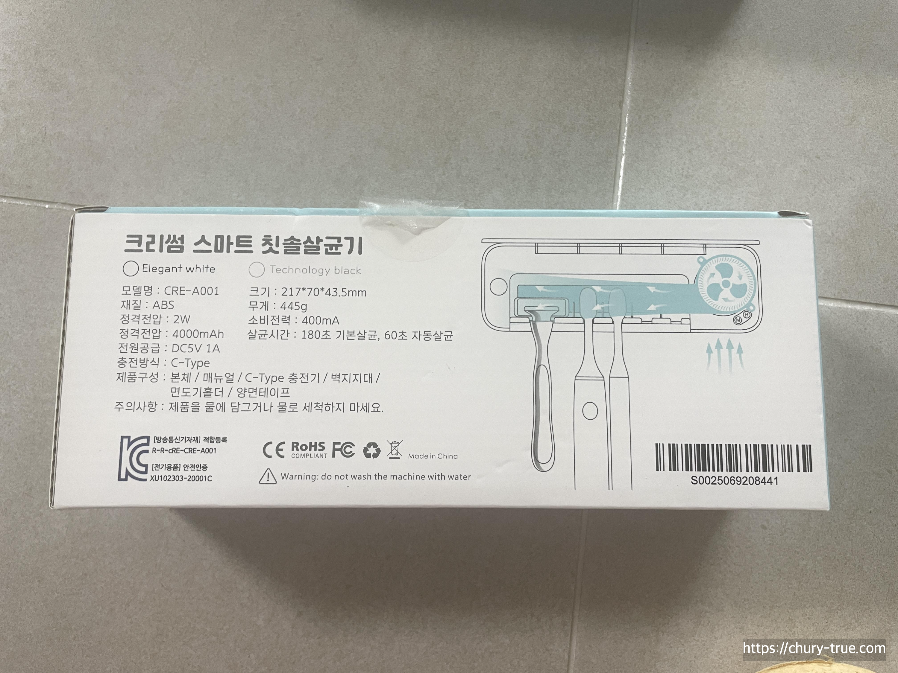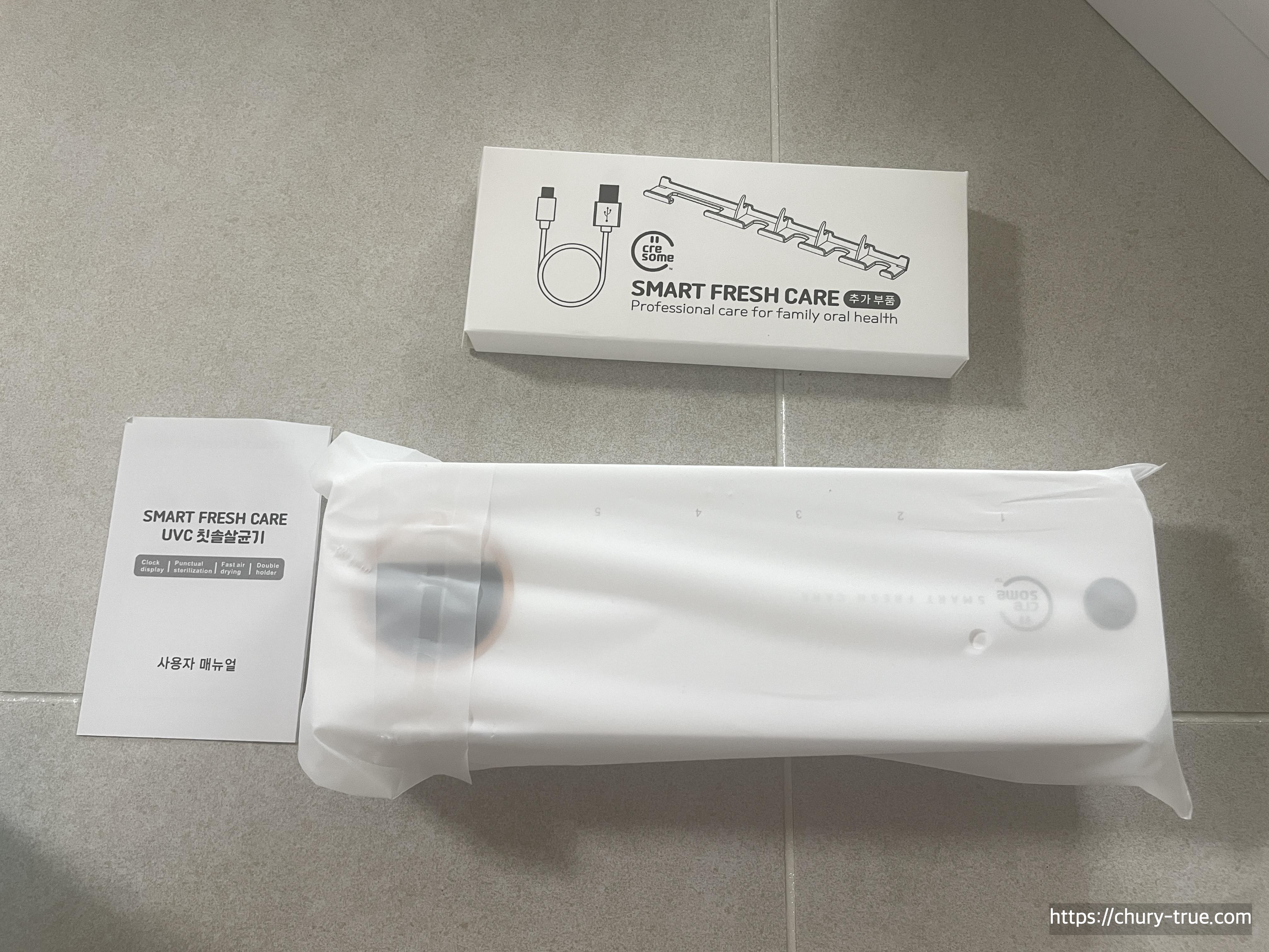 크리썸사의 스마트 프레쉬 케어라는 UVC 무선 칫솔 살균기를 구매하였다.