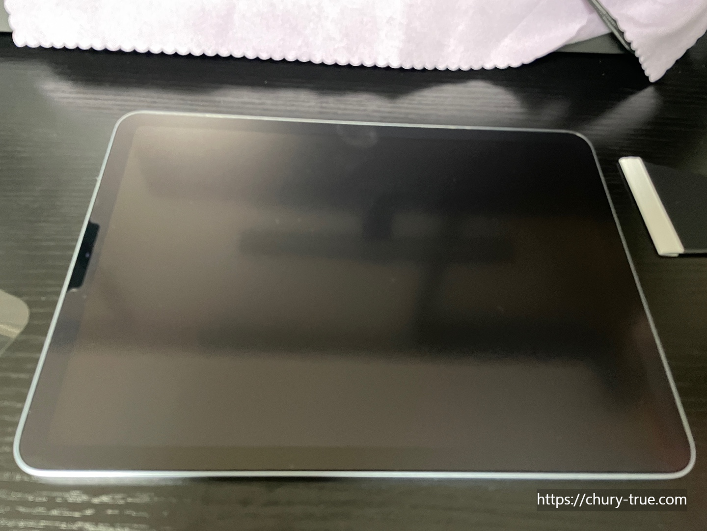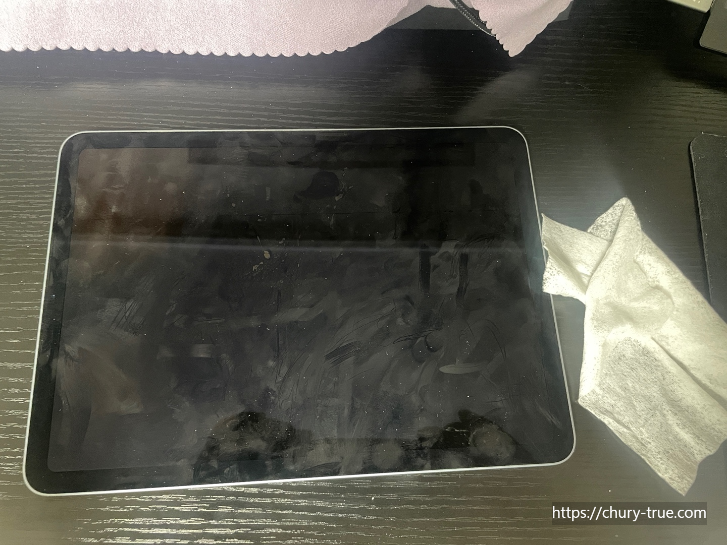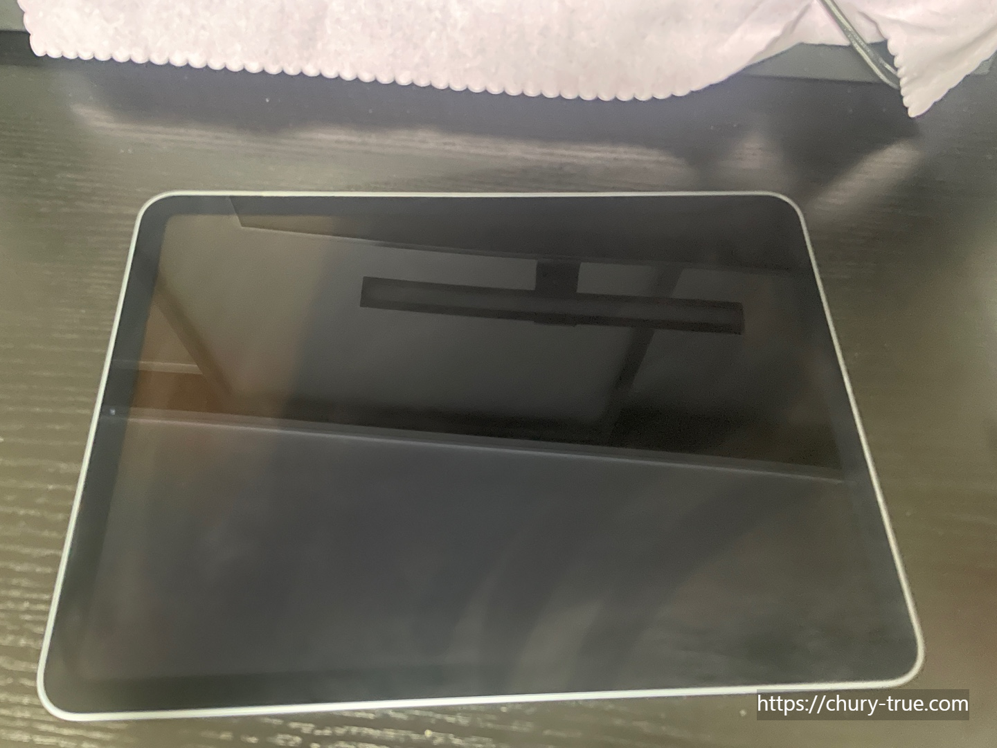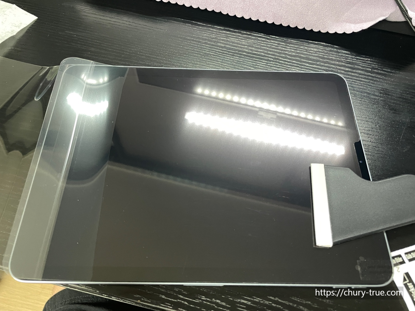 1) 아이패드의 보호필름을 설치할 유리면을 깨끗이 닦는다.