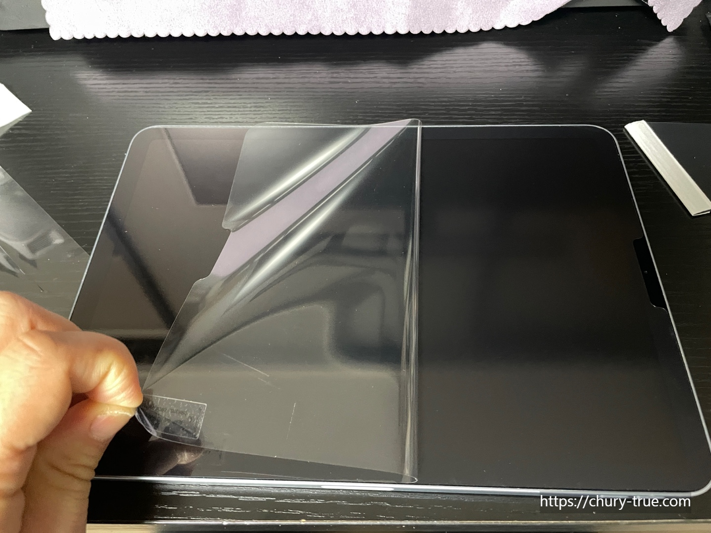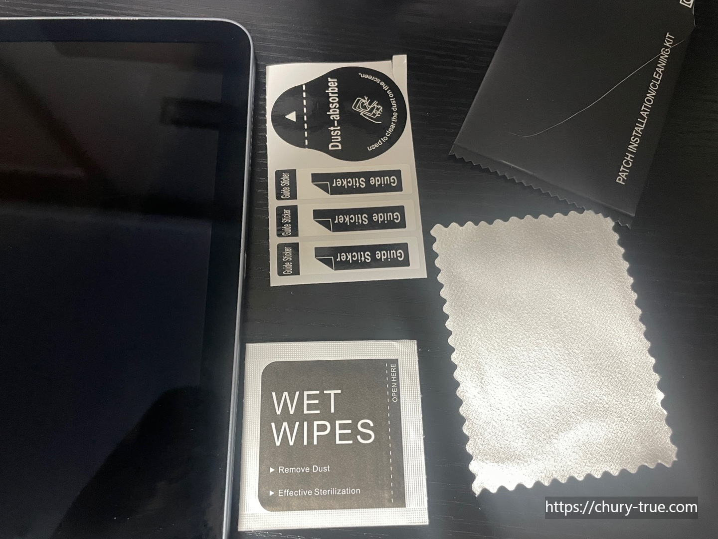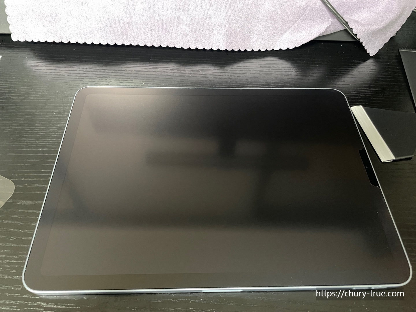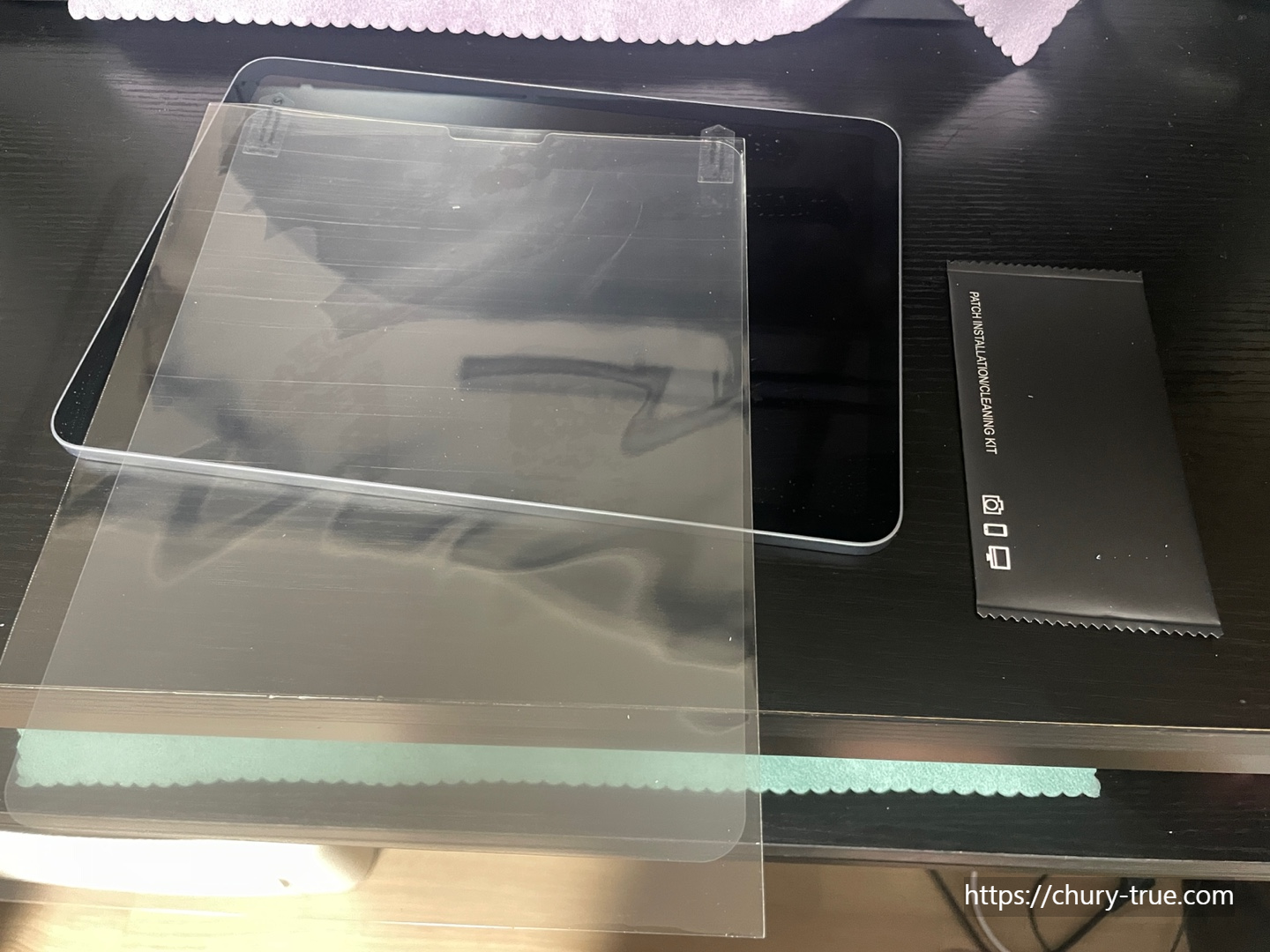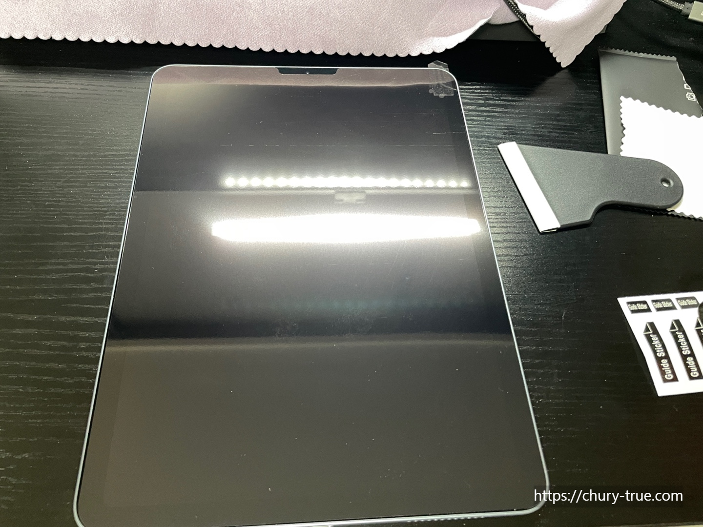 1) 아이패드의 보호필름을 설치할 유리면을 깨끗이 닦는다.