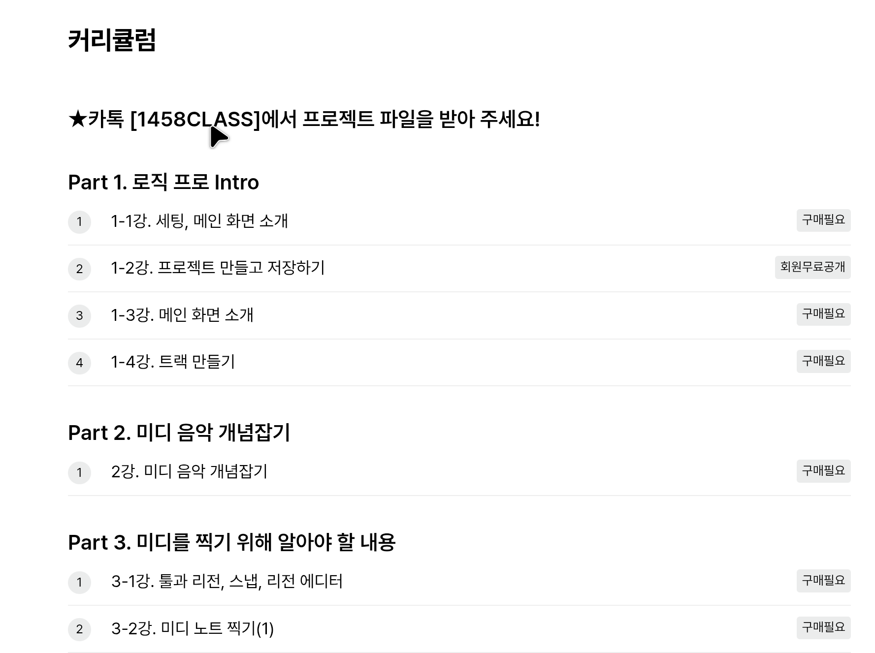 미디음악을 공부하면서 에이블톤 라이브를 맥북에서 사용 중이었는데 맥북에서 최적화되어있는 프로그램인 로직을 배우려고 찾던 중 1458 class에서 로직 프로 강좌를 개설한 것을 알게 되었다.