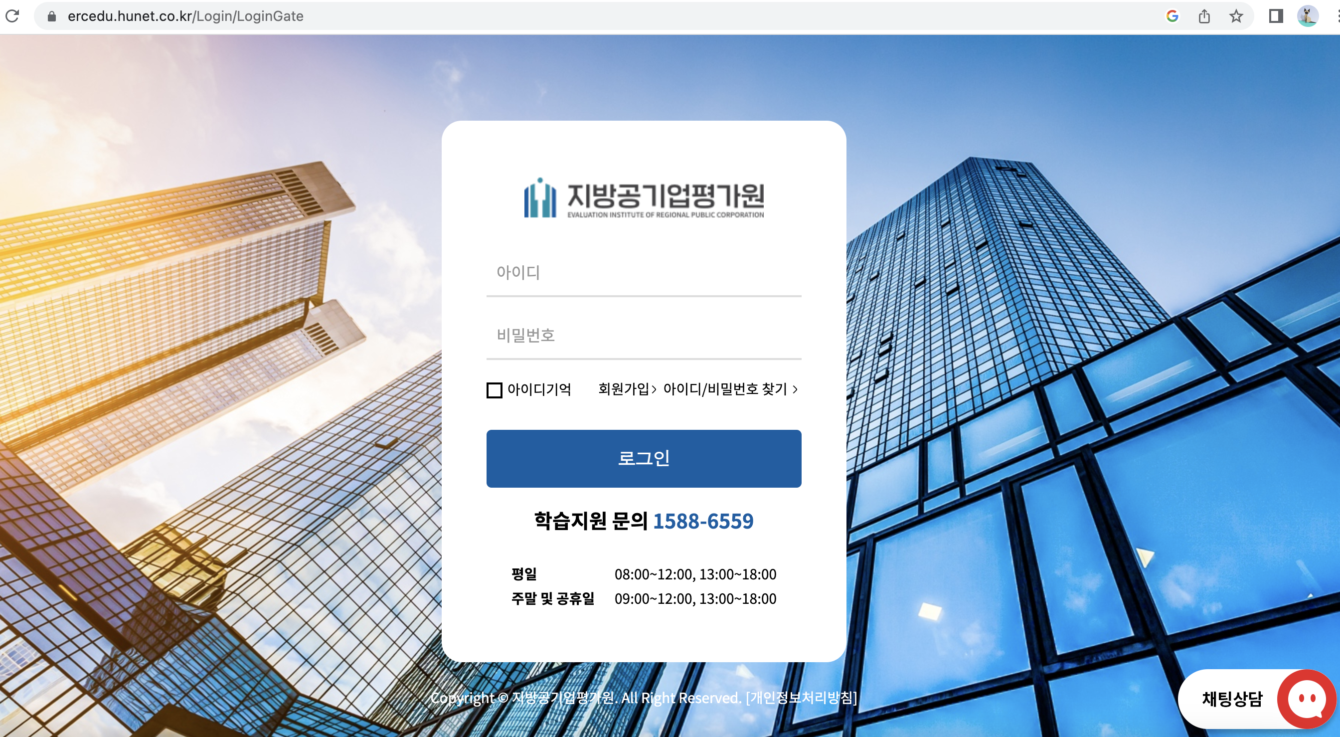 지방공기업평가원 이러닝센터 https://ercedu.hunet.co.kr/Login/LoginGate
