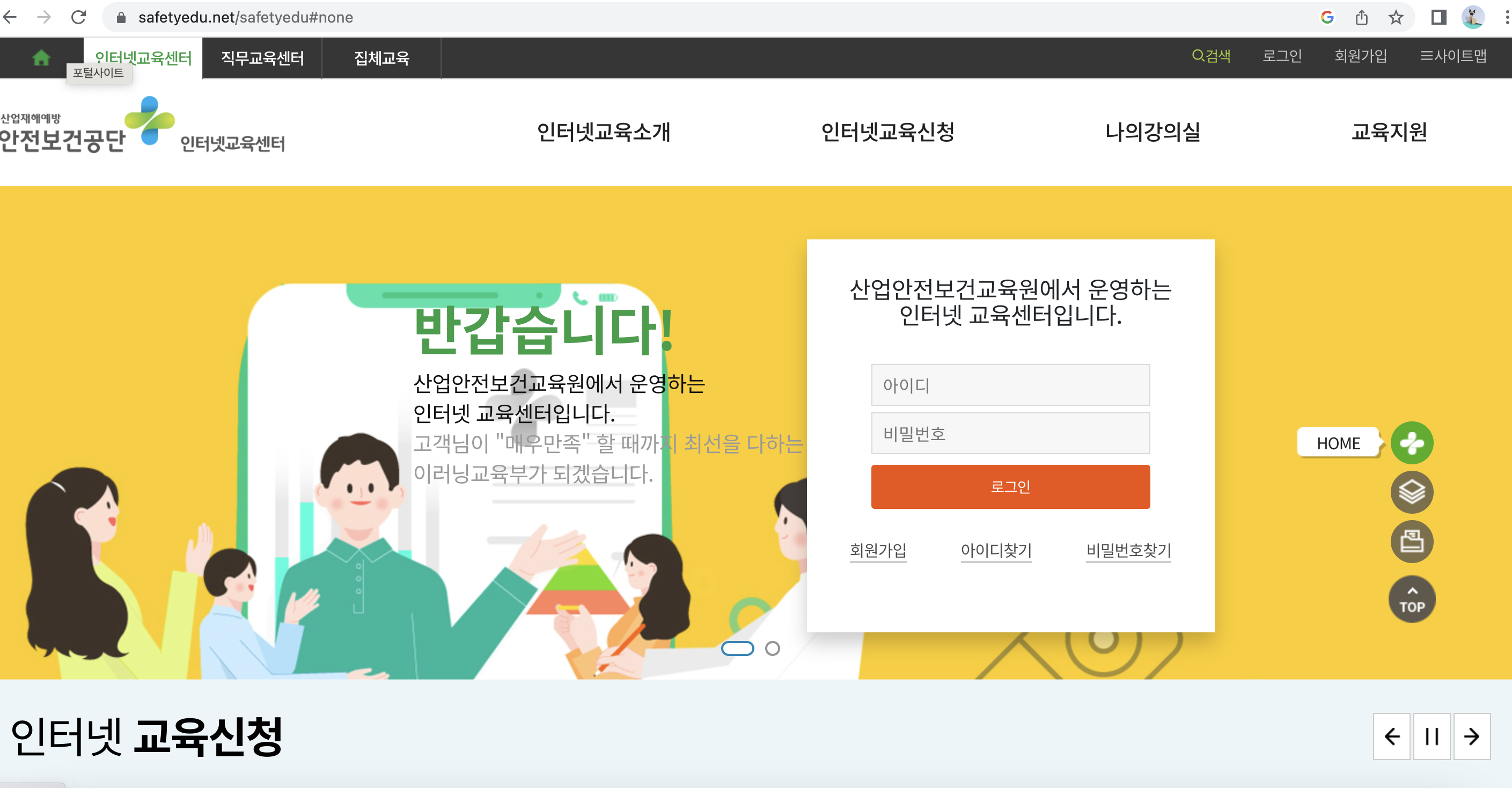 안전보건공단-인터넷 교육센터 https://www.safetyedu.net/safetyedu#none