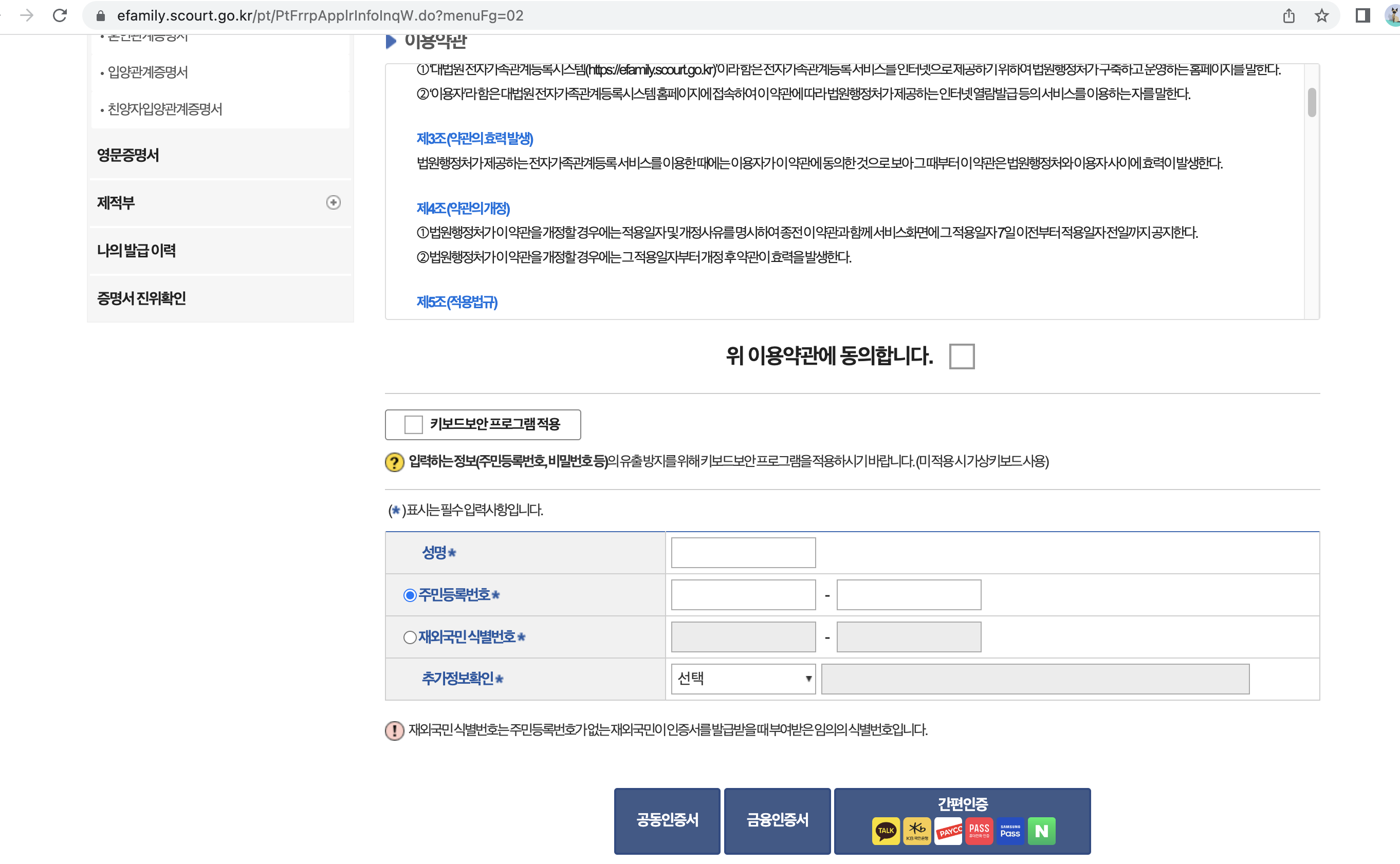 대한민국 법원 전자가족관계등록시스템EB[1/6]