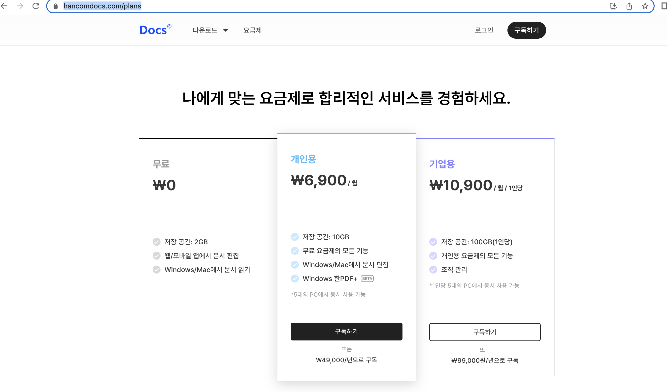 한컴독스 – 한글과컴퓨터의 구독형 한컴오피스