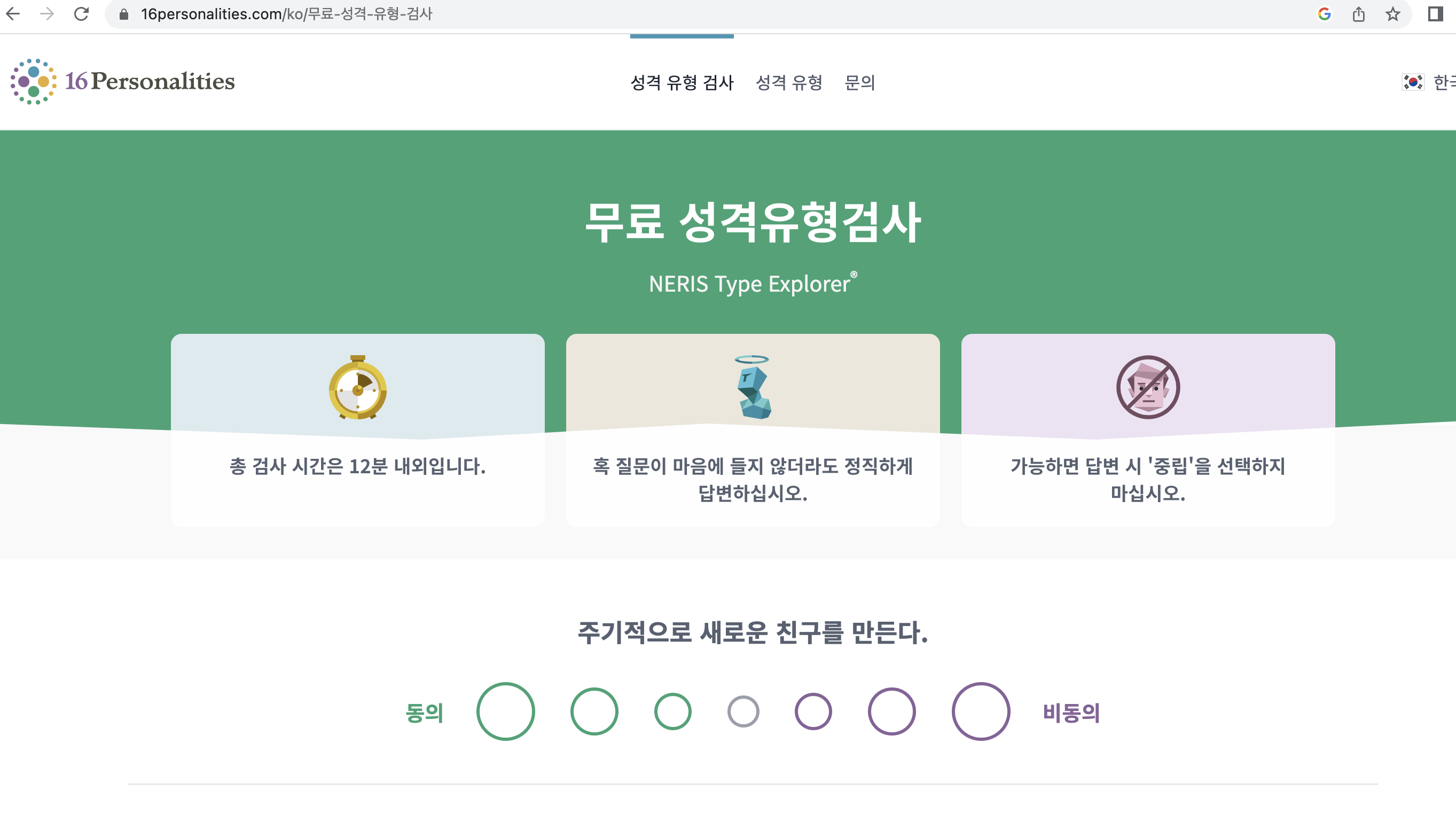 10~15분 정도 시간을 투자해 나의 성격유형을 검사해 보자.